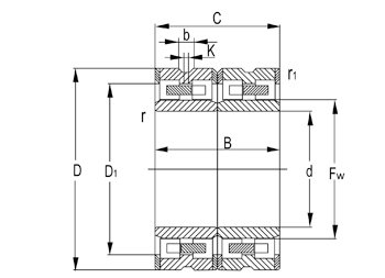 | d | D | B | C | rmin | r1min | Fw | D1 min | b max | k max | dyc(Cr) | stc(Cor) | ||